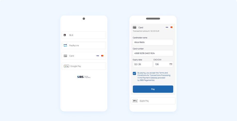 • Payment Form – Embed our iframe-based form to guide customers through a seamless payment flow.