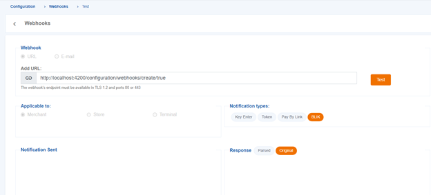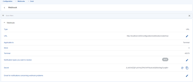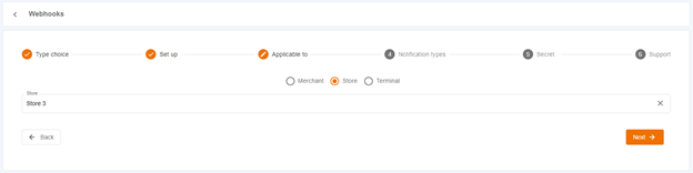 Webhooks can be defined for the merchant, store, or terminal. If they are defined for the merchant, they will apply to all stores and terminals contained within it.
