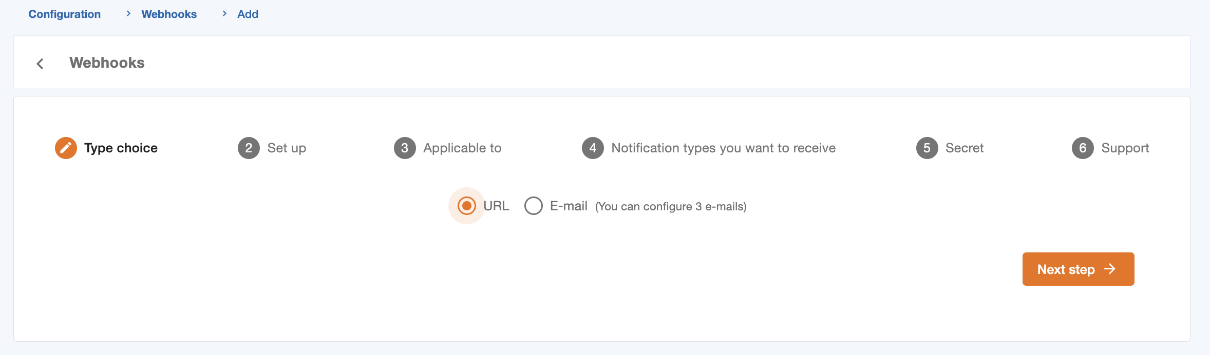 Step 1: Choose Webhook type (Mandatory)