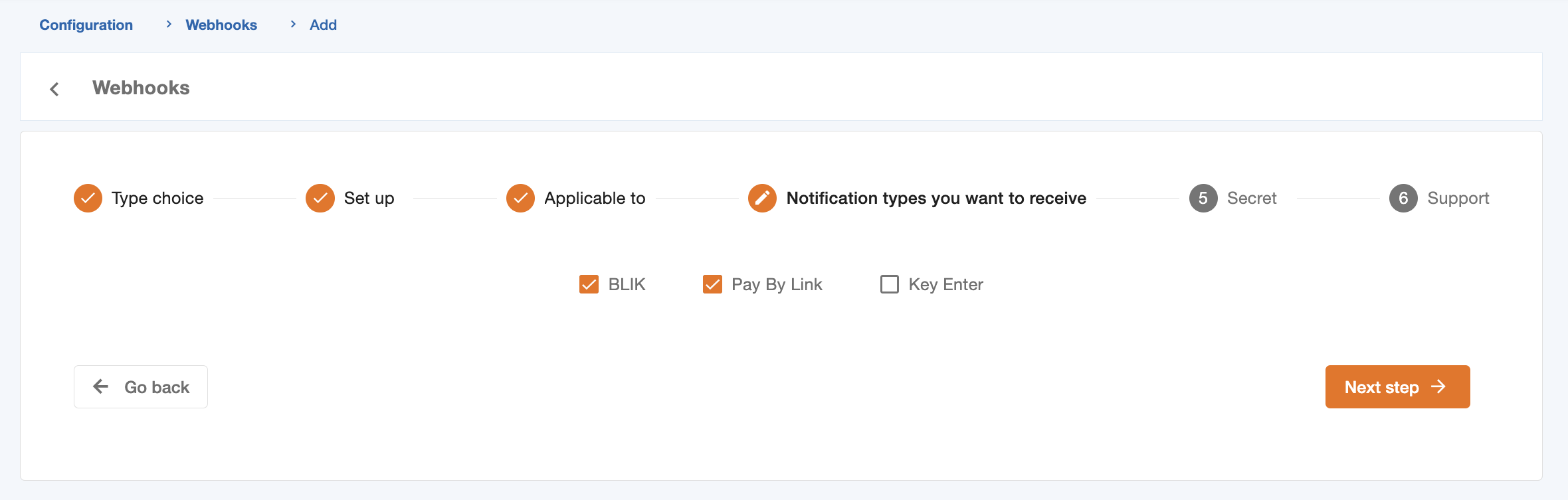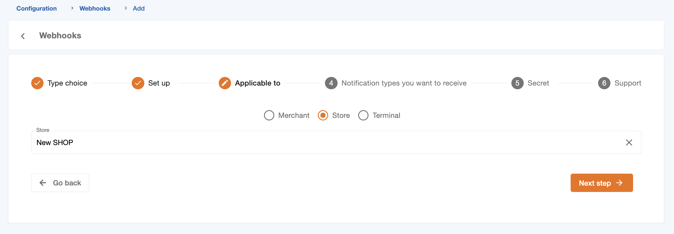 Step 3: Webhook application choice (Mandatory)