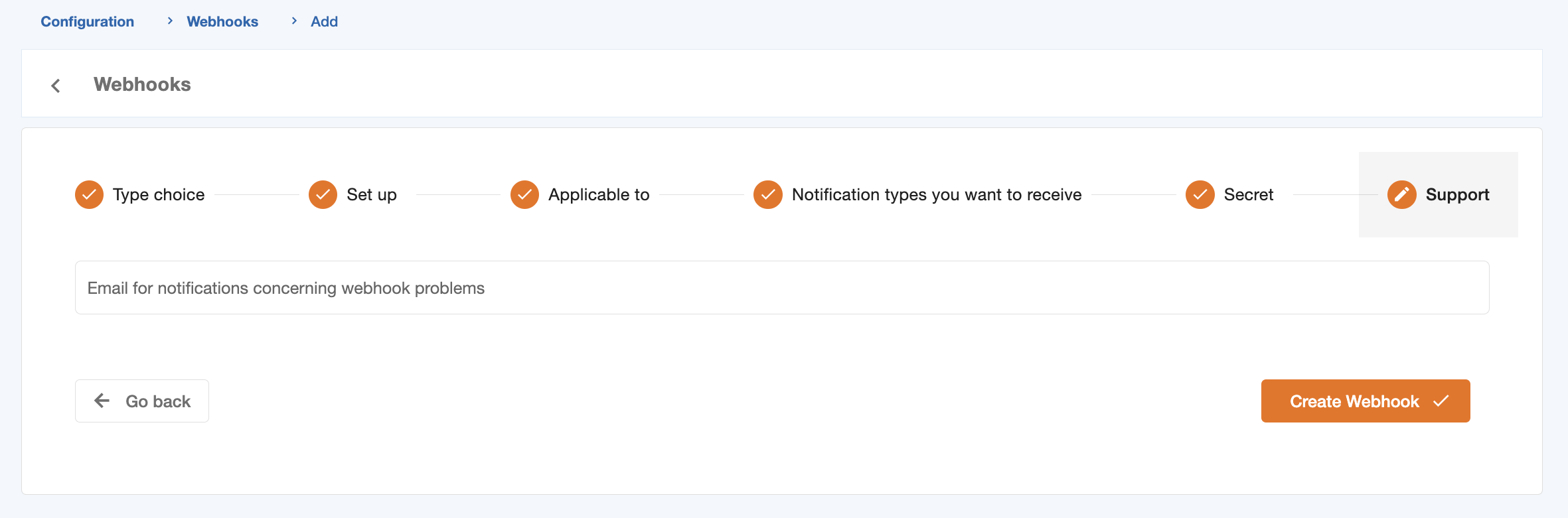 Step 6: Webhook email for support
