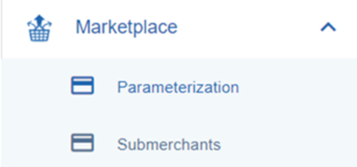The “Marketplace” menu is displayed for customers who have contracted the Marketplace solution. Within this menu are two additional submenus: “Parameters” and “Submerchants”. In the “Parameters” submenu, the user can define the type of validations they wish to be applied to their Submerchants and, through the “Submerchants” submenu, the Marketplace Operator has the opportunity to register new Submerchants or inquire Submerchants already registered in the solution.