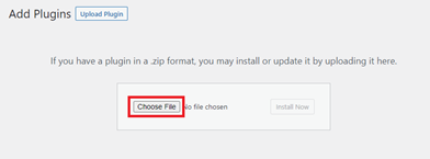 3. Click Choose File, select the SIBS plugins .zip file. Then click Install Now.