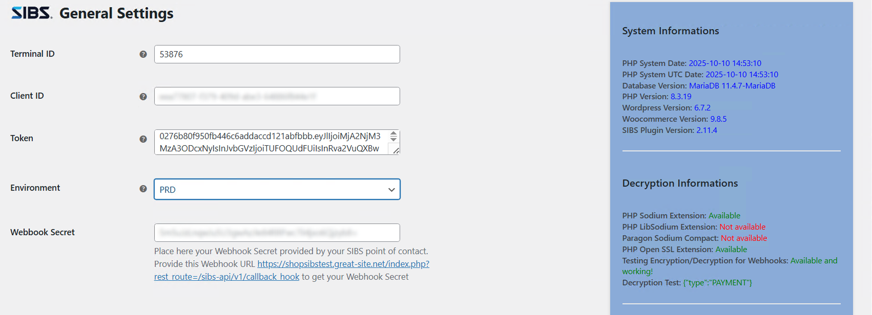 3. Fill in the form with the Webhook Secret configured in SIBS Backoffice (Before you start).