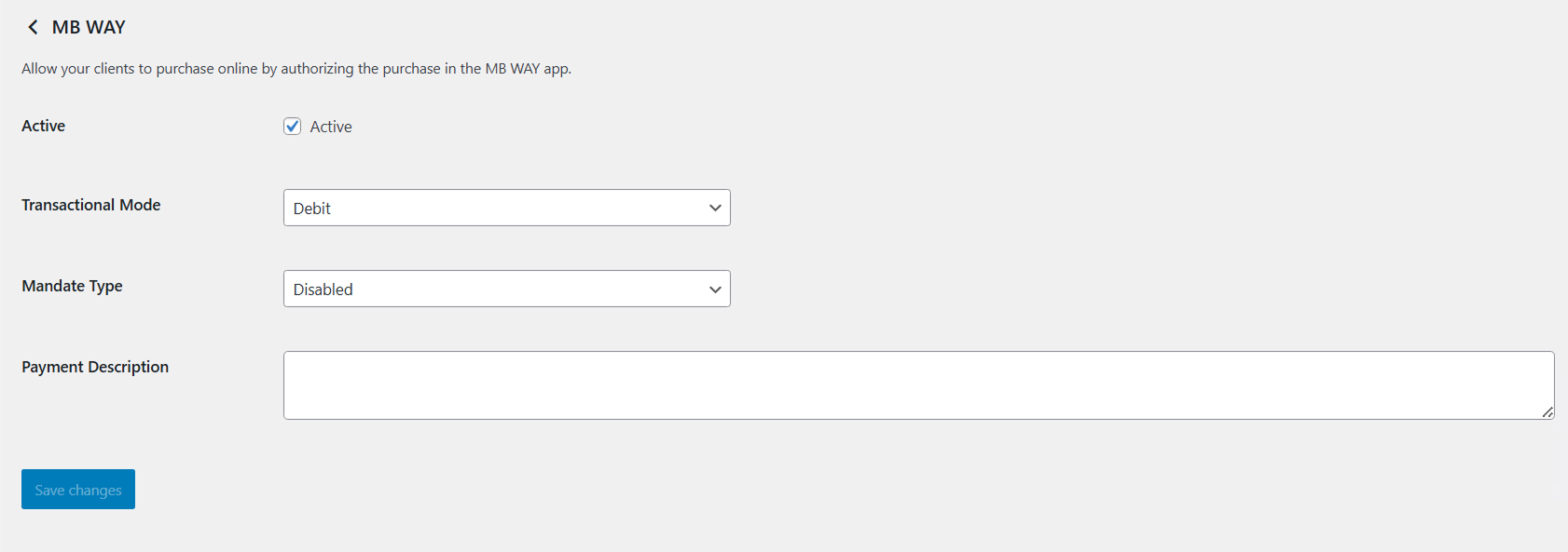 SIBS plugin for WooCommerce supports a range of popular payment methods, including  MB WAY, MULTIBANCO References and Cards (VISA, Mastercard, etc.).