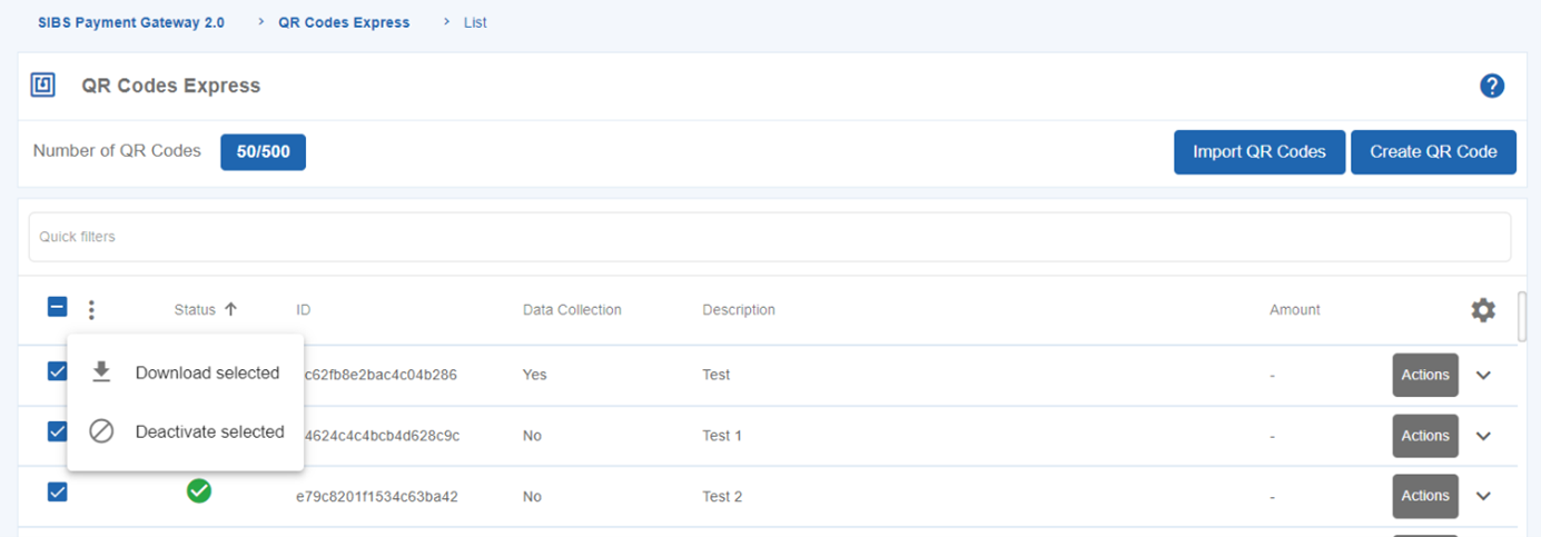 On SIBS Backoffice you can also import QR Codes in bulk through a CSV file.