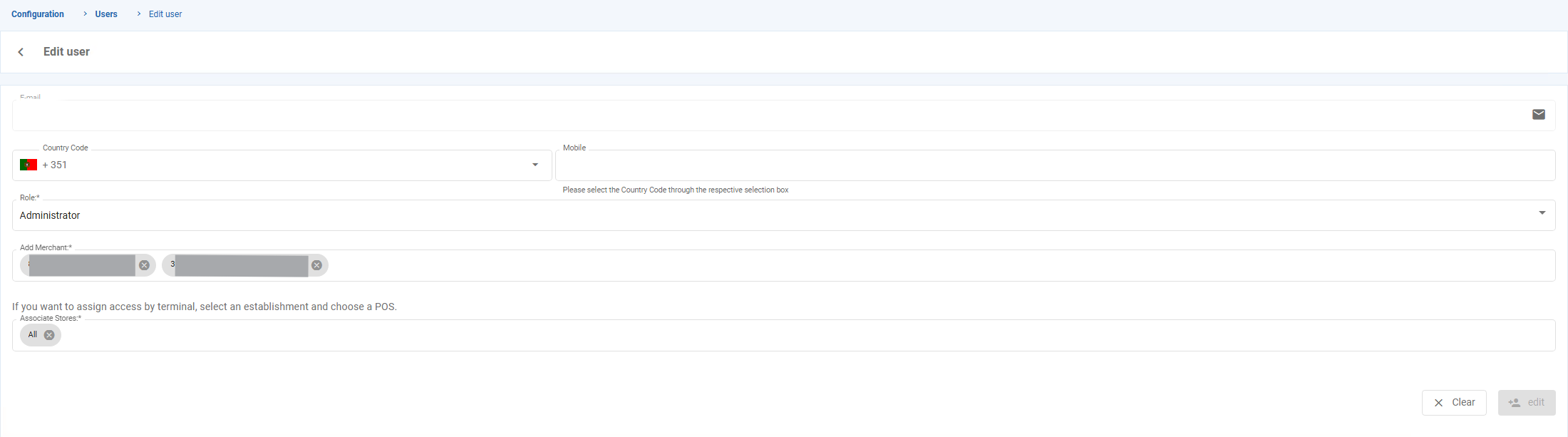 By clicking on “Actions” > “Edit” on a specific user available on the list, you will be able to edit the configurations of that specific user.