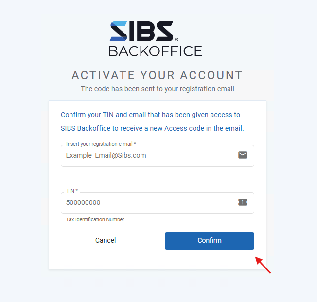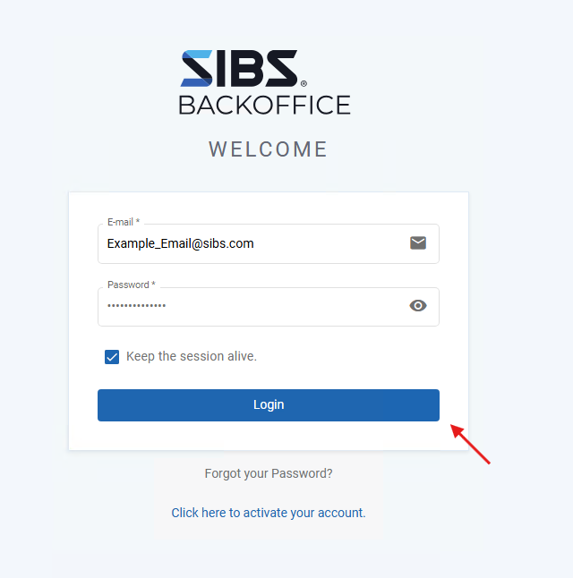 Upon completing the onboarding process, you will receive credentials, including an e-mail and activation code needed to register your access on the SIBS Backoffice.