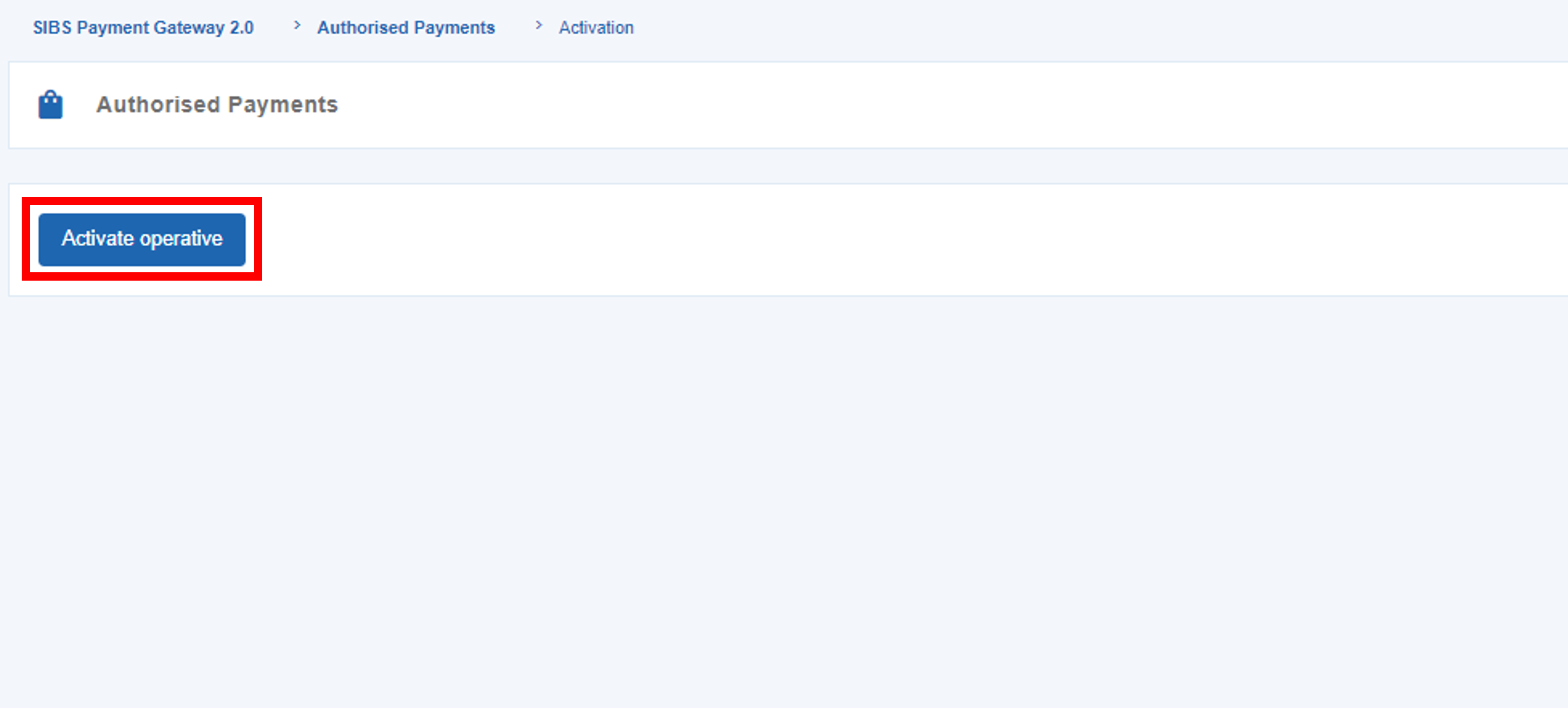 The activation of the Authorised Payments functionality is done via SIBS Backoffice.