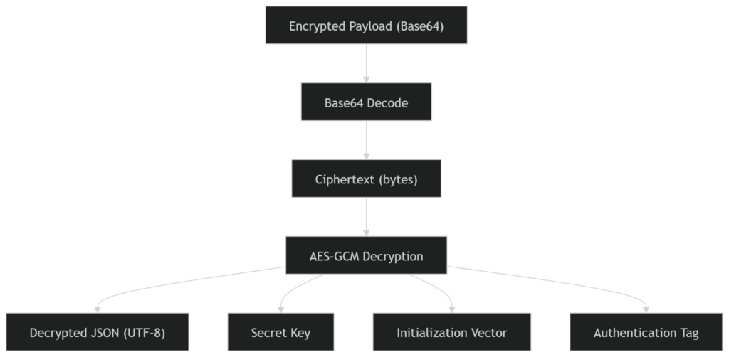 json = AES_GCM_Decrypt(payload, key, iv, tag)