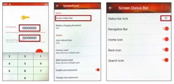 In the “Device” section, disable the “Status bar lock” option to allow access to the options at the top of the screen (for example, enabling the Merchant to choose Wi-Fi networks independently).