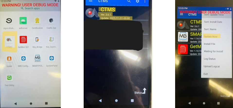 2. Check for pending updates (select the “Update” application on the main screen and choose the “Online Update” option). After updating pending applications, restart the terminal.